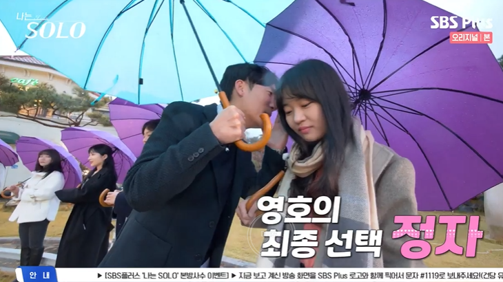 '나는 솔로' 5기 최종 선택이 전해졌어요. 뭔가 이번 기수는 불꽃같이 타오르는 뭔가가 없어서 밍숭맹숭 끝난 것 같은 느낌적인 느낌.