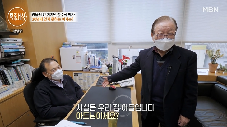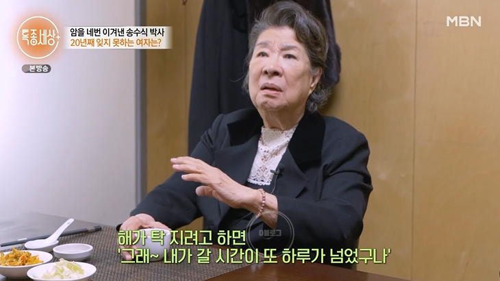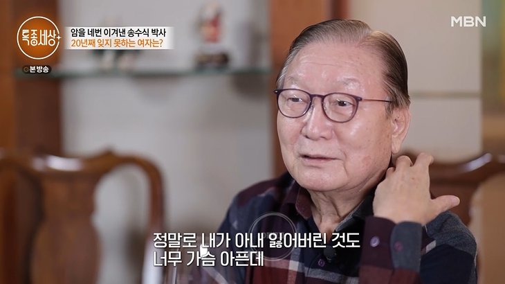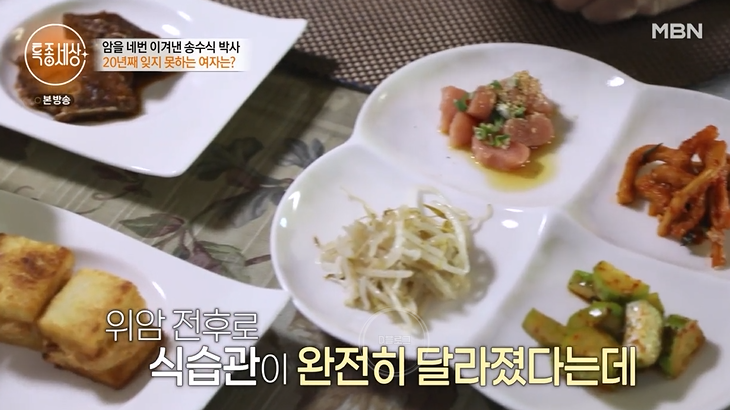 위암 이후 송수식 박사는 매일 아침 운동과 식습관도 완전히 바꾸었대요. 고기 없으면 밥을 안 먹었는데 지금은 건강식으로 챙겨 먹는다고. 송수식 박사는 아내가 떠나고 100일 뒤 집에 혼자 살고 있었는데 갑자기 어느날 식은땀으로 침대를 다 적셨대요. 이후 병원서 위암 판정을 받았다고. 2003년 두 차례 위암 수술을 시작으로 대장암, 전립선암까지 그를 괴롭혔대요. 암 수술만 4번에 뇌출혈 수술, 척추 수술까지 했다고. 다행히 지금은 아주 건강하대요.