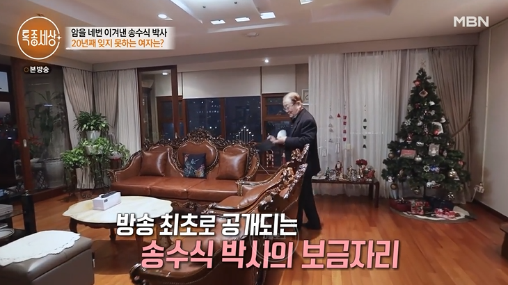 방송 최초 송수식 박사의 집이 공개되기도 했어요. 고급스러운 인테리어가 눈길을 끄네요. 넓은 거실에는 잘 가꿔진 수많은 화분들이 있어요. 현재 처제가 살림을 도와주고 있대요. 동서가 아내보다 1년 반 전 먼저 세상을 떠났다고.