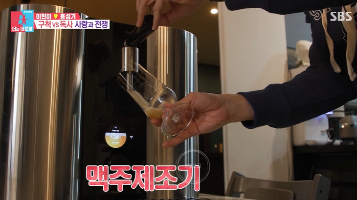 그리고 맥주제조기가 나왔는데 협찬인지 뭔지 모르겠지만 좋아 보이더라고요. 맥주 거품까지 완벽. 맥주 마니아들 솔깃하겠어요. 해당 제품은 LG 맥주 홈브루예요.