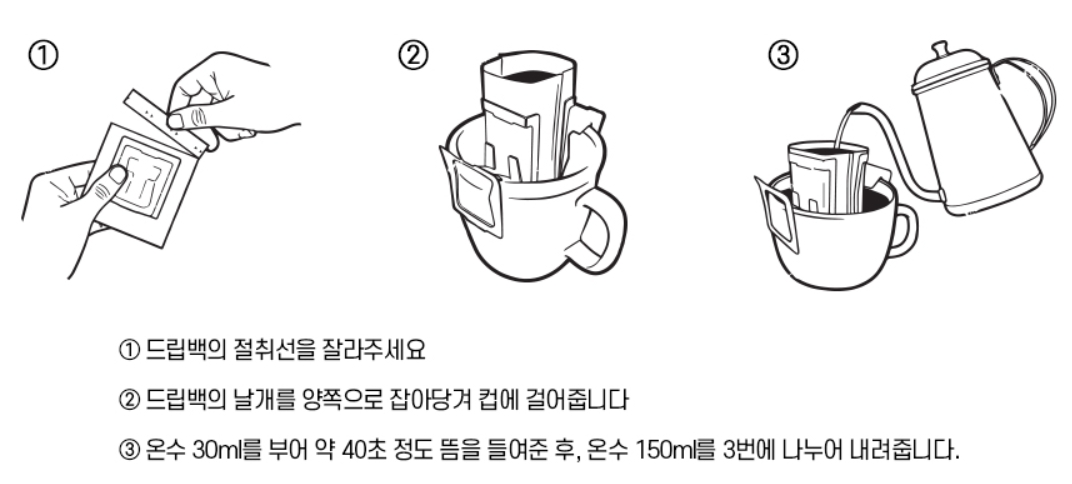 드립백 커피고 사용법은 다음과 같아요.