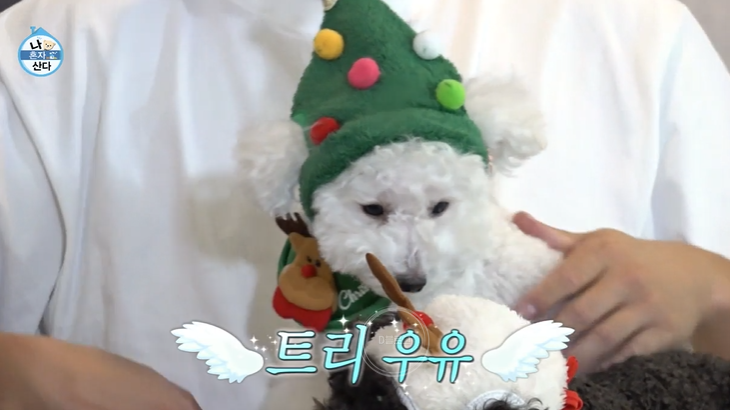 소소하게 만드는 걸 좋아해서 크리스마스 트리도 직접 꾸미더라고요. 케이크도 직접 만들었는데 섬세한 성격인가 봐요. 반려견 이름이 초코, 우유인데 비주얼 심쿵!