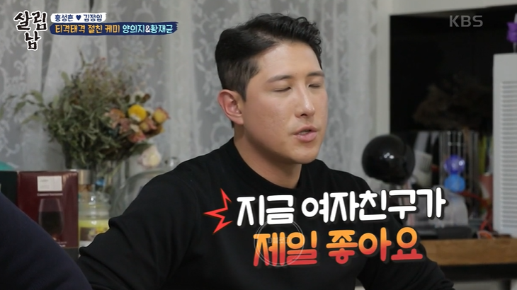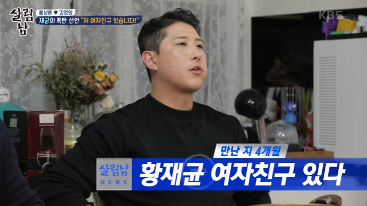그리고 '살림하는 남자들'에서 황재균은 양의지와 홍성흔, 김정임 집을 방문했어요. 그때 동료들은 황재균이 여성스럽고 꼼꼼한 성격이라고 입을 모았고 황재균은 "살림도 다하고 요리도 다 한다"고 말해 홍성흔을 깜짝 놀라게 했죠. 그리고 결혼하고 싶은 연예인 이상형을 묻자 "그런 건 없고 지금 여자친구가 제일 좋아요" 올해 1월에 방송됐는데 만난 지 4개월 됐다고 고백했네요.