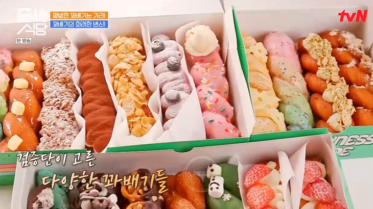 유니콘꽈배기, 갈릭버터꽈배기, 치즈쿠키꽈배기, 티라미수꽈배기, 콘크런치꽈배기 등 보기만 해도 너무 유니크한 꽈배기예요. 시즌 한정메뉴 4종과 썸머비치꽈배기, 할로윈펌킨꽈배기, 스노우그린티 꽈배기, 딸기티라미수꽈배기 등 하루 판매량만 1천개라고 하네요.