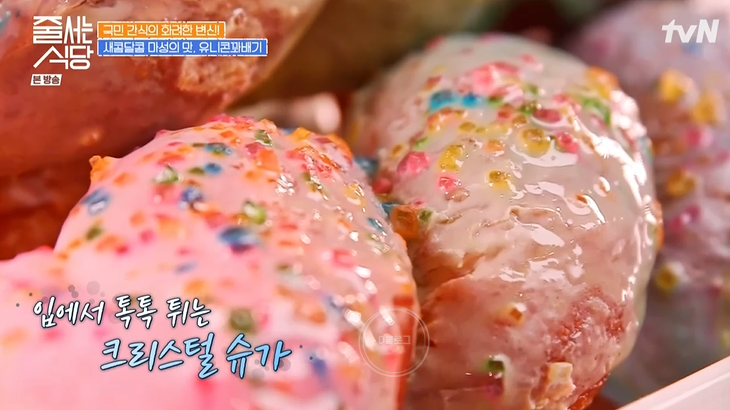 박나래는 이날 셋이서 꽈배기로 83,300원을 썼네요 ㅋㅋㅋ 박나래의 첫번째 픽은 콘크런치꽈배기! 직접 만든 옥수수 크림과 바삭한 시리얼의 조화가 예술이라고.