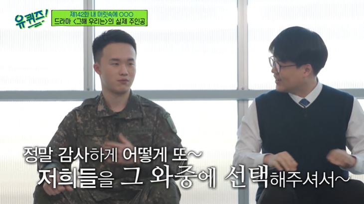 '유퀴즈온더블럭'에 최근 인기리에 종영한 드라마 '그 해 우리는'의 실제 커플이 출연했어요. '웅연수' 커플의 모티브가 된 실제는 동성 친구로, 당시 부광고등학교 1학년 엄규민과 김도윤이에요. EBS 다큐 '체인지 스터디-꼴찌가 1등처럼 살아보기'에 출연해 역주행 인기를 끌었죠. 해당 프로그램은 전교 1등 김도윤과 전교 꼴찌 엄규민이 세 달간 짝꿍이 되어 공부 자세를 배우는 포맷이에요.