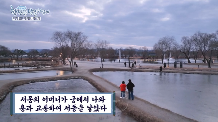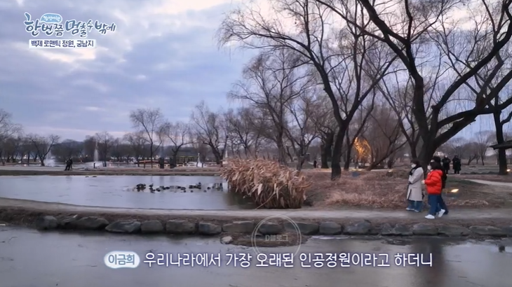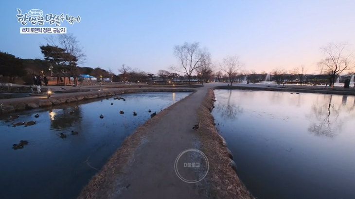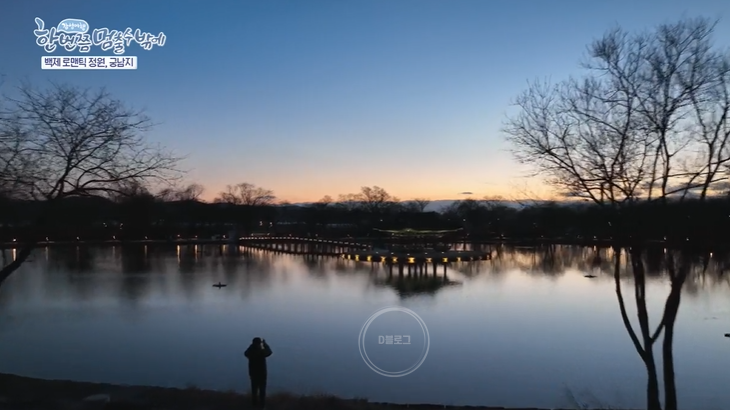 노을 지기 시작할 무렵 세 사람은 궁남지를 찾았어요. 궁남지는 국내에서 가장 오래된 인공정원으로 백제 무왕의 탄생 설화와 선화 공주와의 사랑 이야기가 깃든 곳이라고 하네요. 조명이 하나 둘 켜지니 더욱 아름다워요.