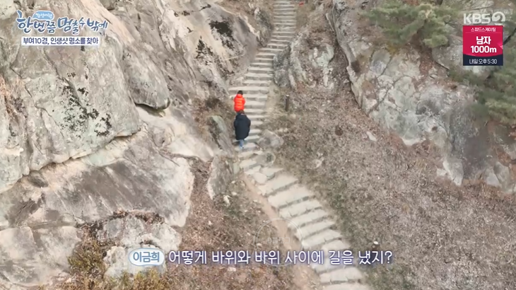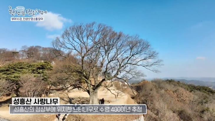 이선희, 이금희의 첫 번째 부여 여행지는 성흥산성 둘레길! 바위와 바위 사이 계단길이 벌써 인상적이네요. 수많은 계단을 올라 끝에 오르면 요즘 인스타에서 핫한 여행지 '성흥산성 사랑나무'가 나와요. 성흥산의 정상부에 위치한 느티나무로 무려 400여 년이 됐다고 하네요. 저도 사진으로만 봤는데 그야말로 명당이네요.