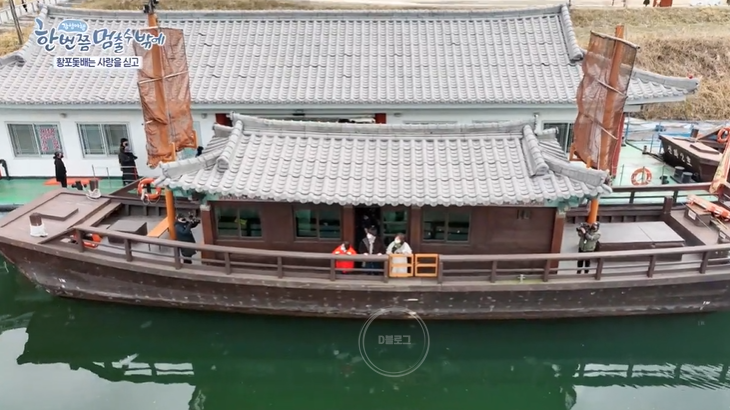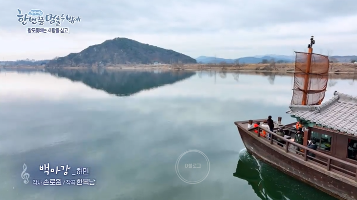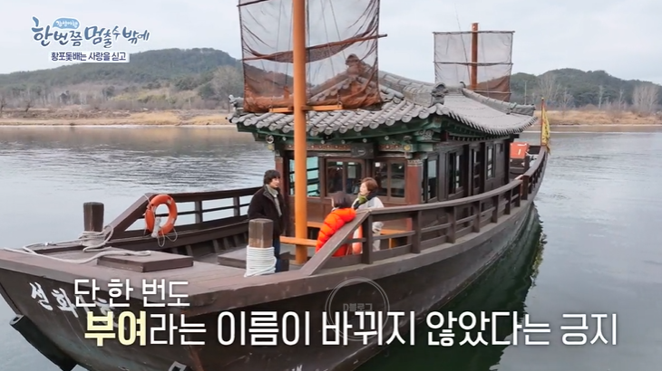 세 사람의 두 번째 부여 여행지는 바로 황포돛배! 부여의 한강 유람선이에요. 잔잔한 백마강 경치가 정말 예술이네요. 백마강 황포돛배는 고란사와 수북정 간 3.5km 구간을 왕복 운항하여 백마강 주변 풍경과 백제의 숨결을 느낄 수 있어요.