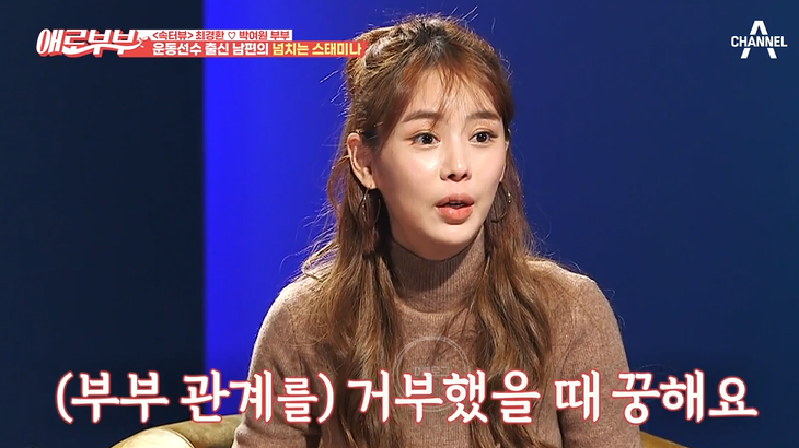 박여원은 49세인 남편 최경환 신체 나이는 30대 초중반인 것 같다고 폭로하기도 했어요. "성욕이 떨어지는 걸 모르는 사람 같아요" 한 번은 박여원이 관계하기 싫어서 소파에서 남편 자는 걸 기다리다가 잠든 적도 있대요. 부부관계를 거부하면 남편이 꿍한다고. "제가 갑작스럽게 부부 관계를 안 하고 멀리하고 변한 게 아니라 결혼하고 나서 셋째 낳고 8년째 작년까지도 남편이랑 계속 떨어져 있었어요. 주말 부부처럼. 근데 최근 1년 사이에 매일 출퇴근하면서 같이 있게 됐어요. 전에는 일주일에 한 번 남편이 오는 날 미리 아이들을 재워놓거나 그랬는데 지금은 그런 패턴이 다 깨졌어요. 그런데도 남편은 그 전처럼 부부관계를 원하는 거예요. 둘이 편한 공간에서 하는 것도 아니고 아이들이 옆에서 자고 있는데 그런 불안함 속에서 하는 것도 싫고 신경이 곤두선 채 하면 저는 성욕이 더 떨어지는 거예요"