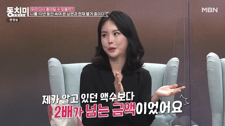 그리고 어제 '동치미'에서 박여원은 남편과 현재 별거 중이라고 말했어요. 방송 출연을 여러 번 고심했다는 박여원은 이야기를 꺼내기 전부터 눈시울을 붉혔는데요. 최경환은 전처 사이에 아이를 두고 있어요. 아이는 전 부인이 양육하고 있죠. 전부인에게 최경환은 매달 양육비를 보내고 있어요. 하지만 박여원은 10년 동안 자신이 알고 있는 금액보다 2배가 넘는 금액을 보내고 있다는 것에 충격을 받았다고 하네요. 속였다는 거에 큰 배신감을 느꼈다고.