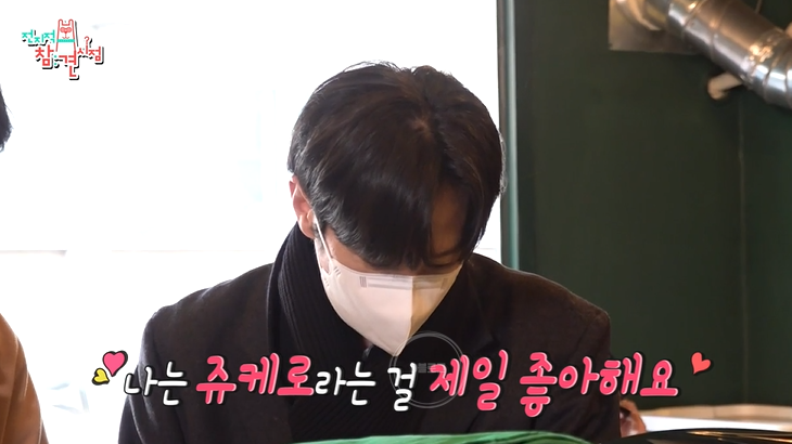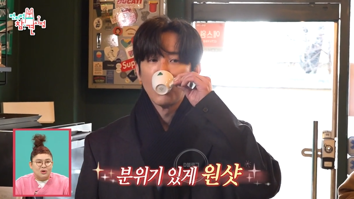 카페는 앉아서 먹을 곳은 없는, 요즘 유행하는 스탠딩 카페래요. 권율은 메뉴들 중에 '쥬케로'라는 걸 제일 좋아한다고. 쥬케로는 이탈리아 말로 설탕이라는 뜻이에요. 에스프레소에 설탕이 들어가는 것도 신기하네요. 유럽에서는 아메리카노, 아이스커피도 취급하지 않는데요. 그 이탈리아 전통을 그대로 옮겨 왔네요. 에스프레소 먹는 권율 모습이 너무 잘 어울려요. 조만간 에스프레소 유행 한 번 탈 예감?