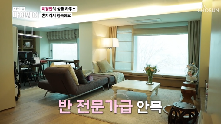 이경진 집도 공개됐어요. 군더더기 없는 깔끔한 인테리어가 눈길을 끄네요. 머문 지 10년 됐다고 하는데 인테리어에 관심이 많대요. 집에 배우 김창숙, 성우 송도순이 방문했는데 직접 음식을 만들어 대접하시더라고요. 김창숙이 이경진 소개팅을 주선하려고 했는데 이경진은 '자만추'라서 관심이 없었다고 하네요. 남자가 있었으면 좋겠냐는 물음엔 "꼭 있을 필요는 없어. 있으면 좋고 없어도 좋고 이제는 그래" 그러자 두 사람은 결혼을 하지 말라고 입을 모으네요.
