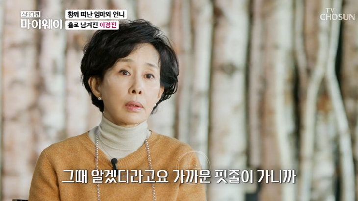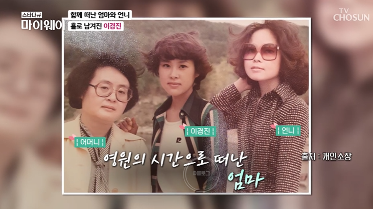 이경진 어머니는 언니가 죽은 충격에 6개월 만에 돌아가셨대요. 1년 사이에 두 사람의 장례를 치렀다고.