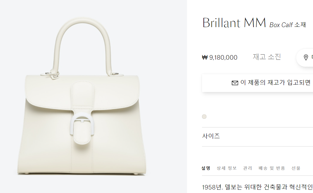 김나영이 차와 맞바꾼 델보 가방 가격은 공식 홈페이지 918만 원이네요. 와우.