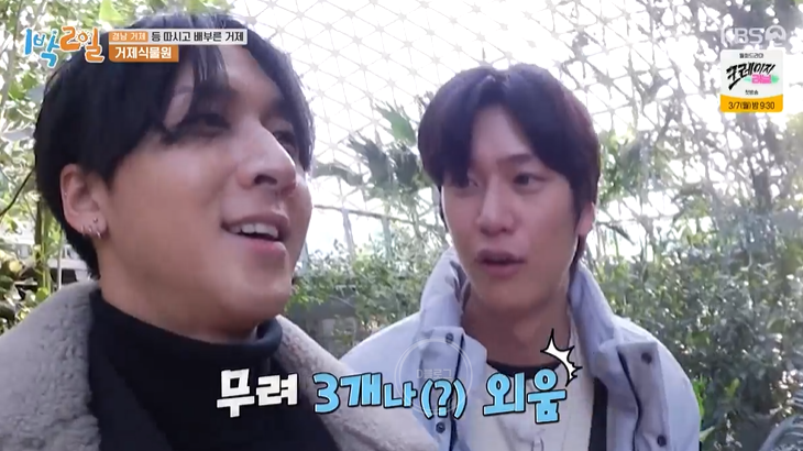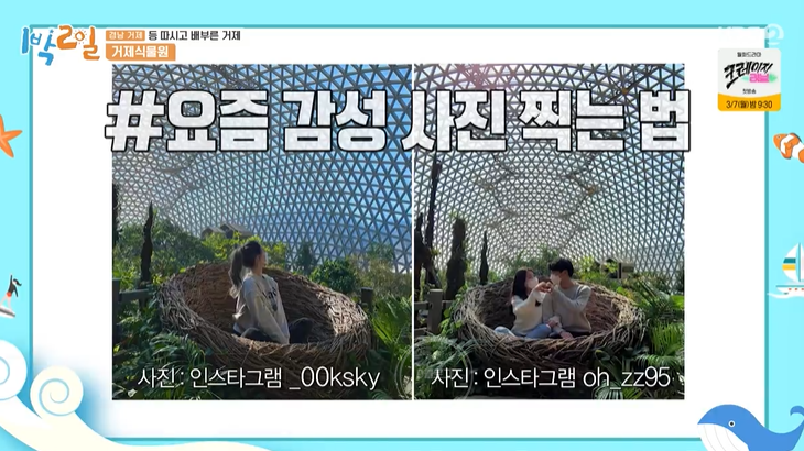 오늘 '1박 2일' 거제도 편이 전해졌어요. 멤버들의 첫 번째 관광지는 거대한 돔이 매력적인 '거제식물원'. 1년 내내 평균 24도를 유지해 겨울에도 따뜻하대요. 국내 최대 규모의 돔형 열대 온실이라고. 우거진 정글에 인공 폭포까지 진짜 자연 속에 들어온 기분이겠어요. 특히 온실의 매력은 겨울에도 꽃을 만나볼 수 있다는 것. 300여 종 1만 주의 열대 수목이 자라고 있대요!