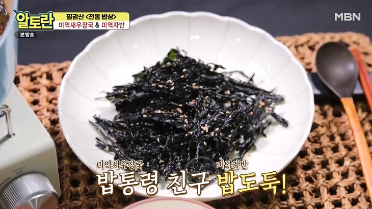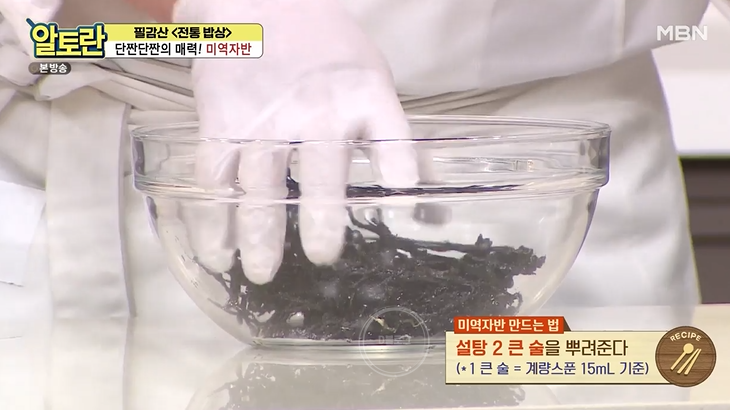 미역자반 재료 : 마른미역 50g(20g=4인분), 식용유 2큰술, 들기름 1큰술, 설탕 1큰술, 통깨 1큰술