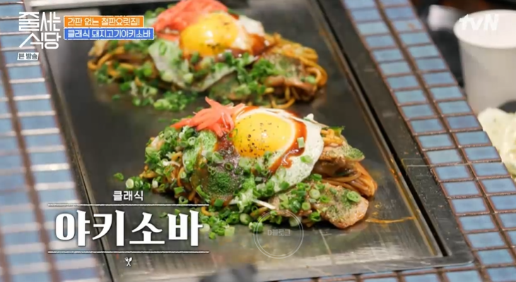 두 번째 메뉴는 채소와 돼지고기를 볶아 생면을 투하, 그 위에 야키소바 소스를 올린 '클래식 야키소바'. 모형 같은 비주얼이 보기만 해도 침샘을 자극하네요. 절로 고개가 끄덕여지는 맛! 짭짤하고 달달한 단짠의 조화가 예술이래요!