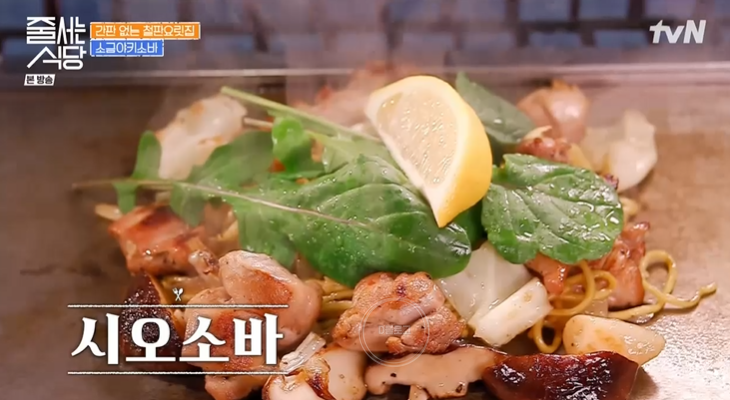 세 번째는 닭 다리살을 철판에 구워 양파와 양배추를 더하고 마늘, 페페론치노 오일, 삶은 면, 시오 소스를 추가한 '시오소바'. 여기 다 비주얼 무슨 일! 햇님은 최고라며 엄지를 치켜들었네요.