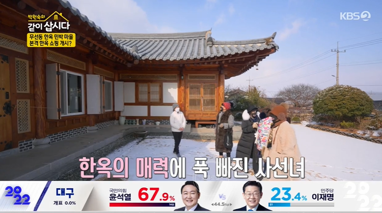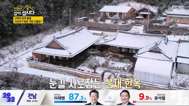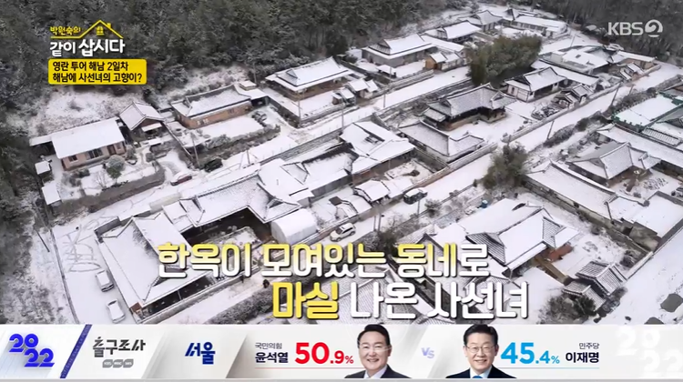 오늘 '사선녀'가 해남 한옥 마을을 찾았어요. 모든 민박이 한옥으로 되어 있다고 하는데요. 눈이 와서 더 한옥이 멋스럽네요. 무선마을은 선녀가 춤을 추는 마을이란 뜻이래요. 두륜산 끝자락에 위치, 30년 전 16가구 한옥 가옥을 중심으로 조성됐어요. 세월의 흔적이 고스란히 담긴 마을이네요.