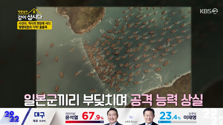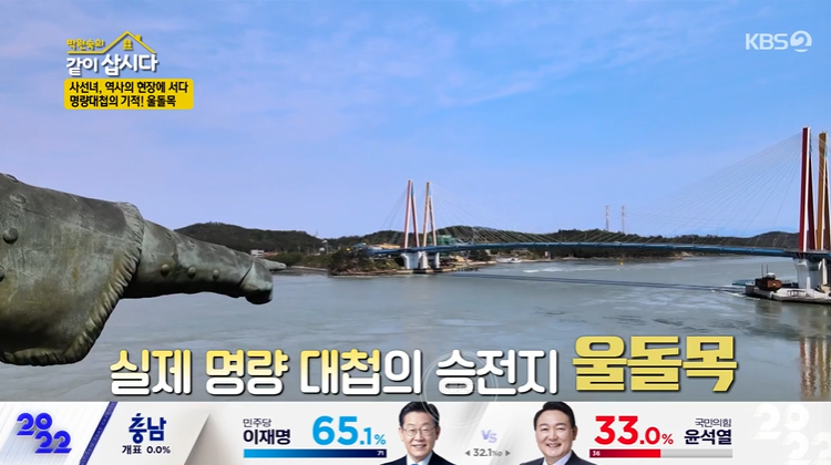 다음 여행지로 방문한 실제 명량 대첩의 승전지 '울돌목'도 멋있네요. 울돌은 바다가 우는 소리를 낸다는 뜻이에요. 그만큼 물살이 세다고 하네요. 조류가 빨라 예로부터 물길이 험한 곳으로 유명하대요. 우와 진짜 물이 막 회오리 쳐요! 조선군 함선 13척이 일본군 함선 330여 척을 무찌를 수 있었던 이유! 이순신 장군은 조류가 센 울돌목으로 일본군을 유인하셨죠. 다시 한번 존경스럽네요.