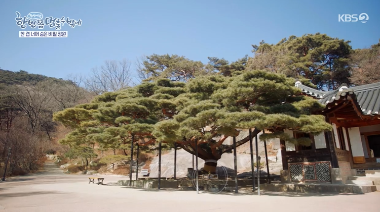 마당 한 가운데 자리 잡은 천세송이 진짜 멋있더라고요. 수령 650년으로 추정된대요. 천 년을 살기 바라는 마음으로 이름 붙여졌대요. 진짜 소나무 아래서 서울 경치를 바라보는 느낌은 어떨까요.