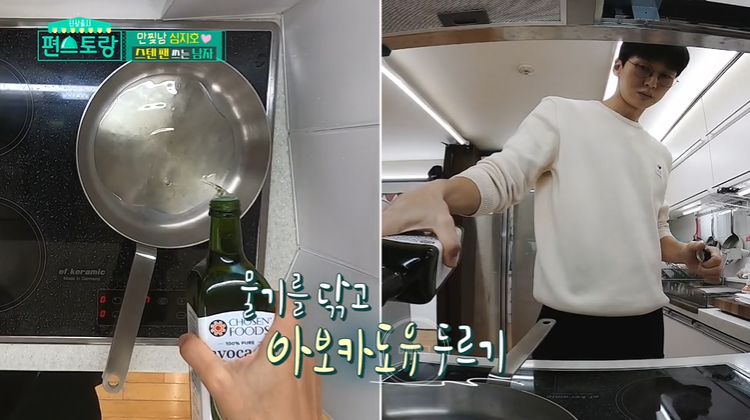 2. 물기 닦고 아보카도 기름 두르고 1분 이상 예열 (기름 물결 생기면 예열 완료)