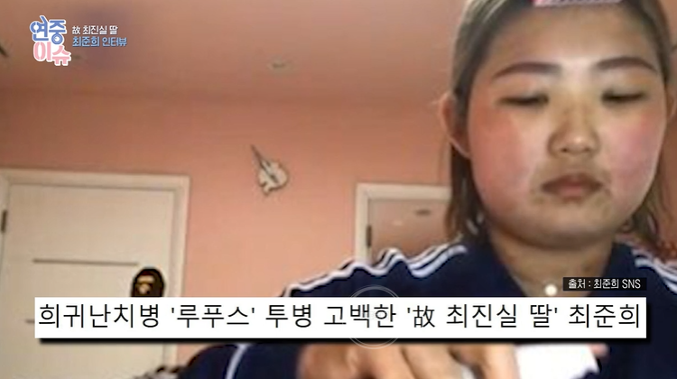 앞서 최준희는 '루푸스' 투병 사실을 고백한 바 있어요. 체중이 급격하게 는 것도 이 때문이라고. "중학교 3학년 말에 걸렸는데 완치라는 개념이 없어요. 사실 지금도 계속 약을 먹고 있고요. 그때 약 때문에 96kg까지 늘어났어요. 엄청 먹었거든요. 약 부작용 때문에"