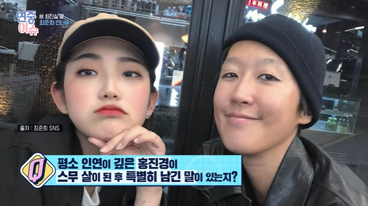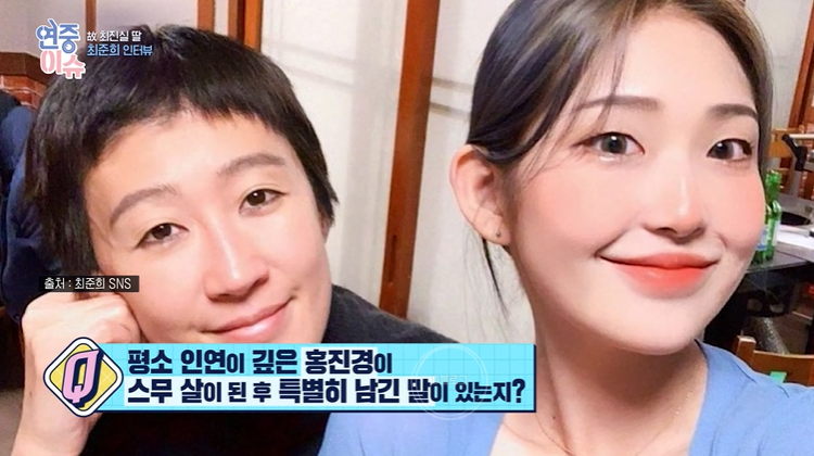 故 최진실 절친으로 유명한 홍진경에 대해서는 "진경 이모가 가장 엄마 같은 존재거든요. 저랑 오빠한테는. 이제 스무 살이 됐으니까 '더 성숙하게 대처하고 살아갈 수 있는 준희가 됐음 좋겠다'고 하면서 자주 전화를 해요. 항상 이모는 준희 위해 기도하고 있다고 해주셨어요"