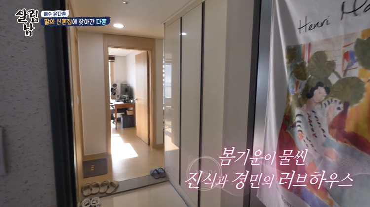 이날은 윤다훈이 딸 신혼집을 찾았어요. 깔끔한 인테리어에 신혼집 분위기가 풍기네요. 윤다훈은 아기를 부른다며 복숭아 그림을 선물했어요ㅋㅋㅋ 앞서 윤다훈은 딸 남경민에 대해 많은 사랑을 주지 못했다며 "준비가 안 됐는데 나한테 왔고 할머니, 할아버지 손에서 자라서 미안한 게 더 큰 딸, 그래서 더 소중하고 애틋하고 각별한 딸"이라고 밝힌 바 있어요.