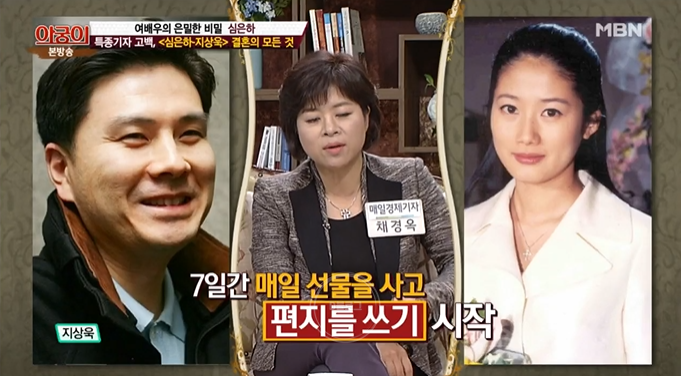 지상욱 의원은 톱 여배우인데도 털털하고 유머러스한 모습에 반해 마음을 열고 연애를 시작했어요. 그러다 연애 3, 4개월 차에 지상욱이 일주일 동안 미국 출장을 가게 됐고, 보고 싶은 마음에 매일 선물을 사고 편지를 쓰기 시작했대요. 출국한 뒤 지상욱은 심은하에게 7개의 손편지와 선물을 건넸고 심은하는 크게 감동했다고.