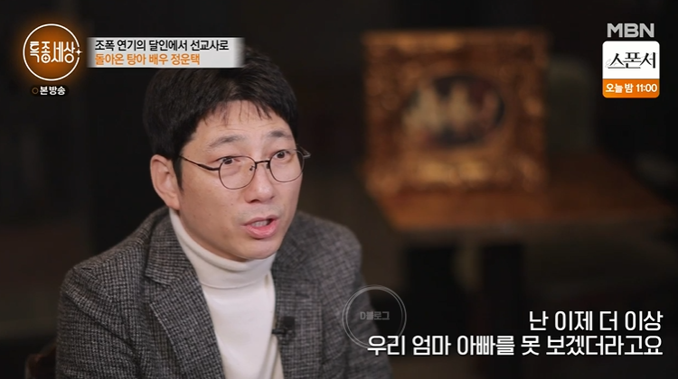 정운택은 부모님 집을 찾기도 했어요. 부모님은 아들에 대해 항상 불안하고 초조한 마음으로 살았다고 하네요. 심지어 정운택은 영화 제작에 실패해 100평대 집을 잃고, 덮친 데 덮친 격으로 어머니까지 직장암 말기 판정을 받으며 힘든 시절을 보냈다고 해요. 2년 간 찜질방을 전전하며 절망에 빠져 살았다고. 이후 정운택은 도와 달라고, 이제 착하게 살고 싶고, 도움이 되는 삶을 살고 싶다고 늘 간절히 기도했대요. 그렇게 지금까지 왔다고.