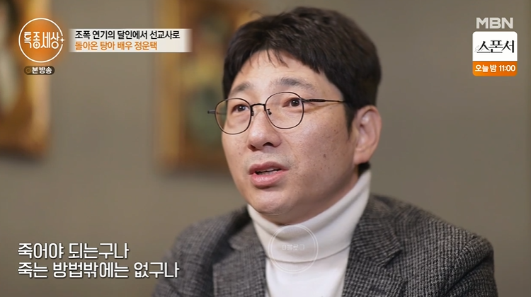전과 3범이라는 불명예를 가진 정운택은 한 때 삶을 포기할 생각까지 했다고 해요. "작품이 끊기고 그러나 성공해서 부자로 살아야 된다는 야망은 그대로였고 그런데 뜻대로 풀리지 않는 것에 대한 답답함. 술이 한잔 들어가니까 주체가 안되고 터져버린 거죠. 그때 제 마음에 확 일어나는 생각이 죽어야 되는구나, 죽는 방법밖에는 없구나"