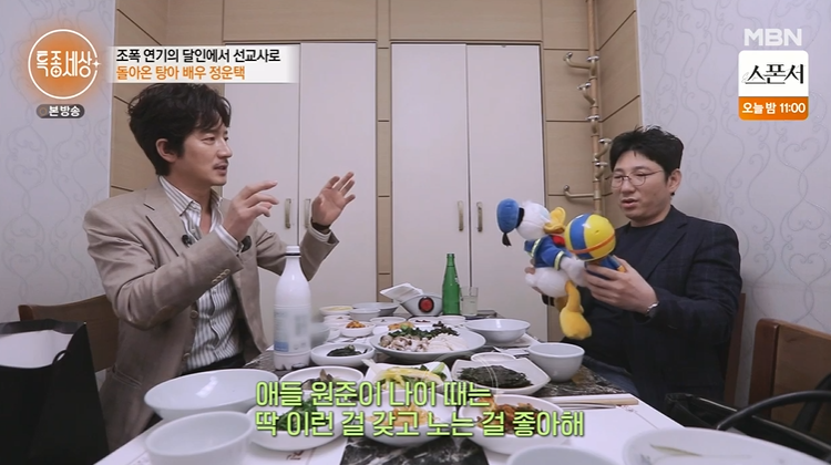 이날 정운택은 영화 '두사부일체'를 통해 인연을 맺은 배우 정준호를 만나기도 했어요. 선교사 근황에 정준호도 깜짝 놀라네요. 아들을 위해 다양한 장난감을 선물해주는 정준호. 딸이 입던 옷도 직접 다 챙겨왔네요. 정준호 님 정운택 위해 '특종세상'도 출연하고. 인간성 너무 좋아보이세요!