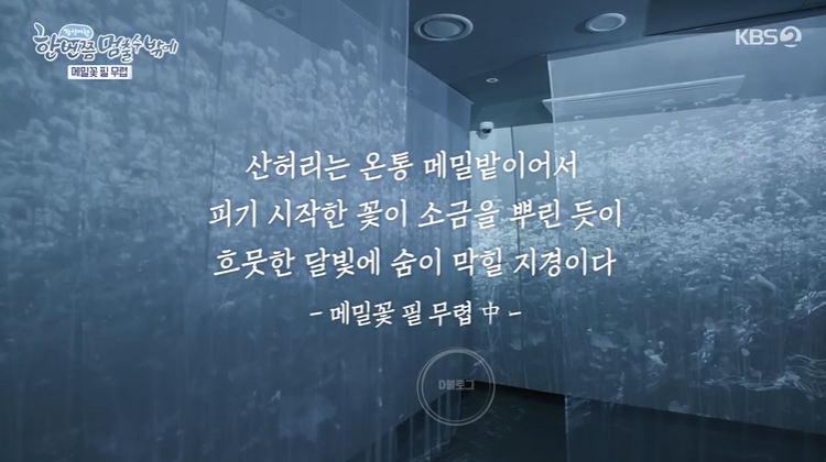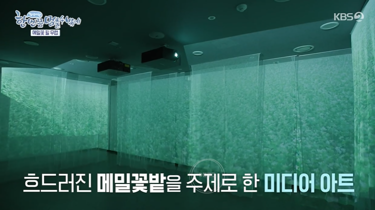 흐드러진 메밀꽃밭을 주제로 한 미디어 아트 체험관도 있어요. 이 공간 정말 가보고 싶을 정도로 몽환적이네요. 이효석 작가의 생가를 재현한 장소도 만나볼 수 있어요. 뿐만 아니라 이효석 작가가 평양에서 거주했던 집을 재현한 곳 '평양 푸른 집'도 있네요. 밤에 가니 더 운치 있고 멋있어요.