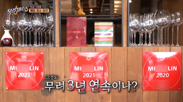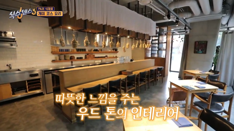 3년 연속 미쉐린에 선정된 식당! 따뜻한 느낌의 우드 톤 인테리어가 편안한 느낌을 주네요. 독특한 게 메주가 걸려있어요ㅋㅋㅋ