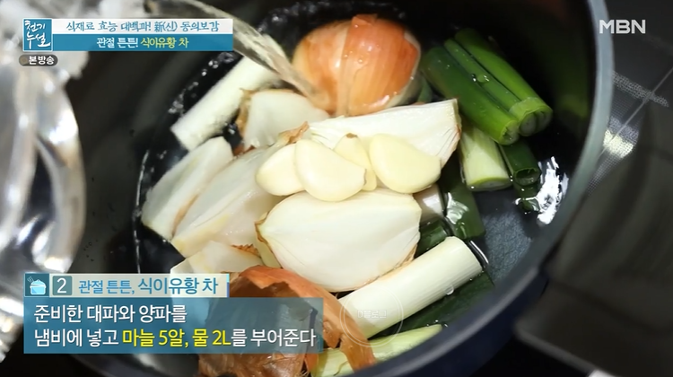식이섬유 황 성분은 미네랄 성분과 함께 먹으면 체내 흡수율이 배가 됨. 양파, 대파, 마늘에는 황 성분뿐만 아니라 칼륨, 인 성분 같은 각종 미네랄 역시 풍부. 양파 쿼세틴 성분과 식이유황 속 글루타티온 성분이 만나면 항염증 작용에 시너지 효과를 내 관절을 튼튼하게 만드는데 도움이 될 수 있음. 하루 2잔, 식후 섭취