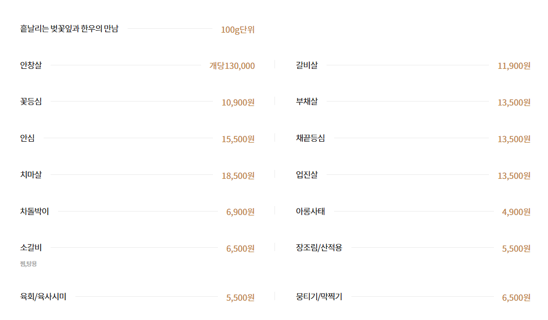 가격: 꽃등심 10900원, 안심 15500원 등