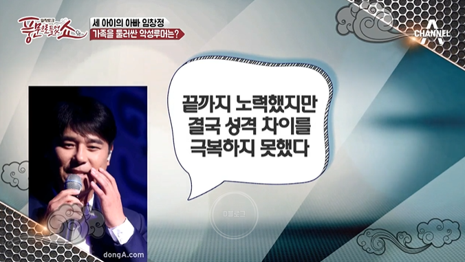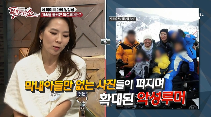이혼 시기 당시 임창정과 전부인은 충격적인 루머에 시달리기도 했어요. 막내아들이 임창정 친자가 아니라는 루머가 퍼진 것인데요. 소문의 출처는 한 온라인커뮤니티예요. '임창정이 부인을 의심해서 아이들의 유전자 검사를 해봤다더라. 근데 막내 아들이 혼외자더라'는 글이 올라온 것.