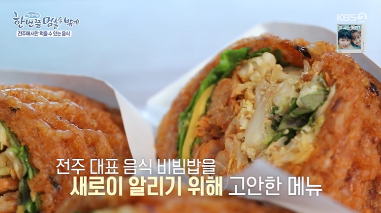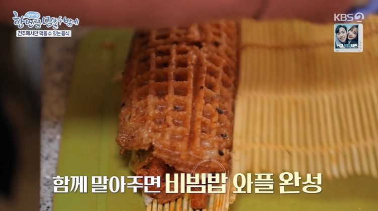 '한 번쯤 멈출 수밖에' 전주 맛집이 소개됐어요. 바로 비빔밥 재료를 와플 기계에 구워 만든 비빔밥 와플! 비주얼부터 맛이 없을 수가 없네요!