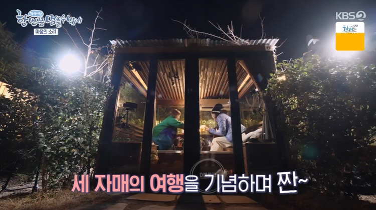마지막으로 세 사람이 찾은 곳은 족욕카페! 카페는 아니고 한옥 숙소 안 족욕실이에요. 일행끼리만 사용할 수 있는 프라이빗한 공간이네요. 요즘 시국에 딱 좋겠어요. 따뜻한 물에 발 담그고 포장해온 맥주 한 잔 짠! 여행 피로 단번에 풀리겠어요.