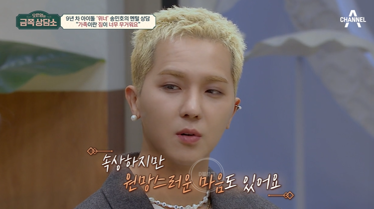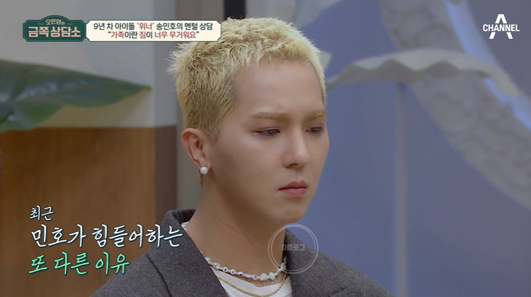 송민호 "네.. 아버지가 지금 아프세요. 그것도 굉장히 신경이 많이 쓰이고.. 간 쪽이 좀 안 좋으셔서.. 아프신지는 꽤 됐는데 아버지가 관리를 좀 못하셔서 병이 커졌어요. 그래서 입원을 하고 계시는데.."