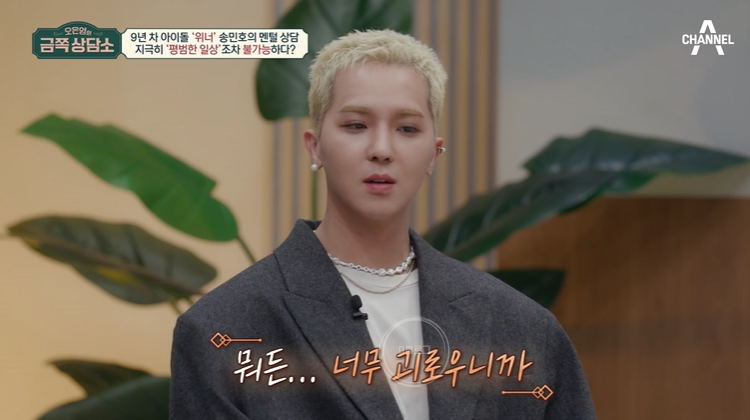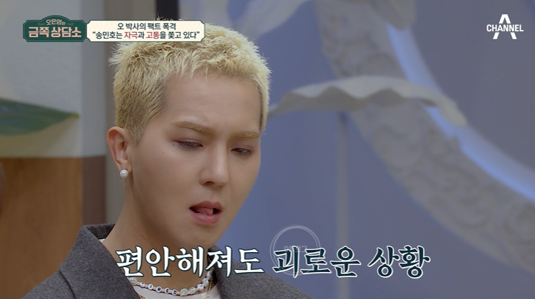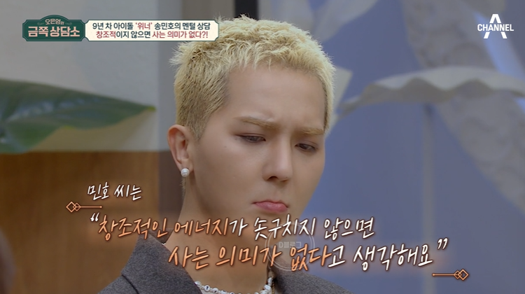 오은영 "민호 씨의 여러 가지 다양한 면들이 민호 씨를 힘들게 했군요. 근데 민호 씨 인생의 행로에서 '고통의 바다'라 하지 않습니까. 다 피할 수가 없습니다. 그런 것들을 진솔하고 솔직하게 느끼고 표현하고 사랑하는 팬들하고 나누는 건 좋은 거라고 생각해요"