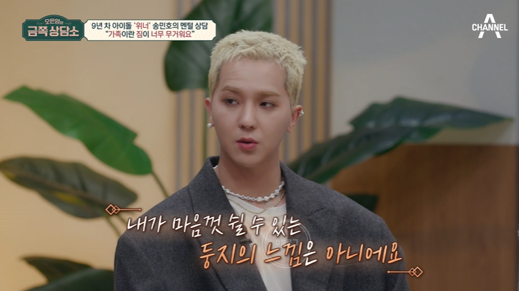 송민호 "사실 가족이 의지가 되는 편은 아닌 것 같아요. 어쩌다 보니 가장의 역할을 하고 있고 그래서 그런지 가족이 굉장히 소중하지만 내가 마음껏 쉴 수 있는 둥지의 느낌은 아닌 거 같아요"