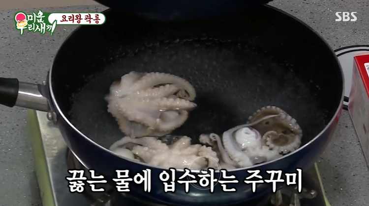 5. 팬에 주꾸미 추가, 양념 올리고 볶기