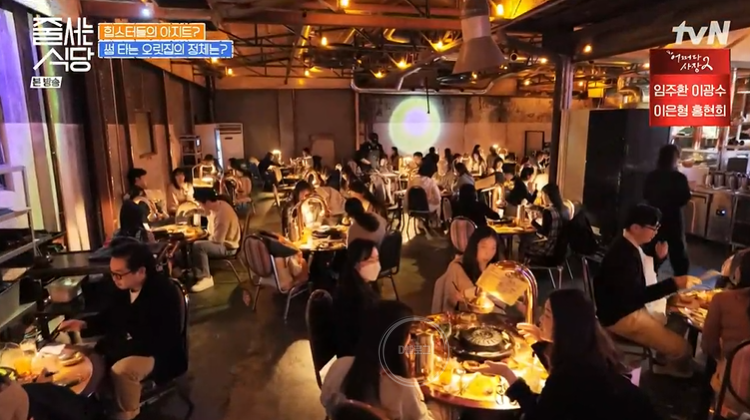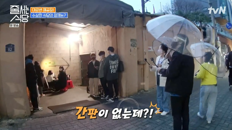 이날 두번째로 간 식당은 박나래가 후보 리스트로 요청한 곳이래요. 못 가봐서 가보고 싶었다고. 근데 막상 식당 앞에 왔는데 간판도 없고 어리둥절. 진짜 무슨 폐공장 같아요! 그런데.. 문을 열고 들어 가면 딴 세상이 펼쳐지네요. 입구는 물론 통로까지 사람들로 북적북적. 줄 서는 법은 안쪽으로 들어와 웨이팅 리스트 작성하기!