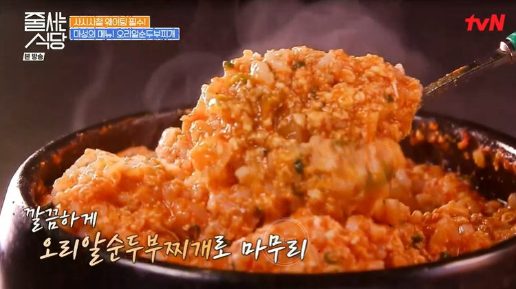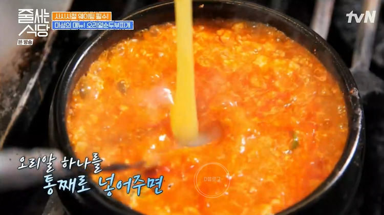 또 다른 인기 메뉴는 바로 오리알순두부찌개! 가마솥에 볶은 양념장에 으깬 순부두를 넣고 오리알로 마무리해요. 오리알이 들어가는 게 신기하네요. 부드럽고 고소한 맛이 일품이래요.