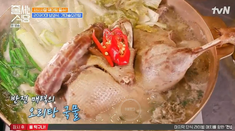 느끼할 것 같다는 예상과 달리 깔끔하고 시원한 깊은 맛이 느껴진대요. 햇님은 텀블러에 국물 넣고 다니고 싶을 만큼 취향저격이래요! 오리고기도 너무 부드럽대요.