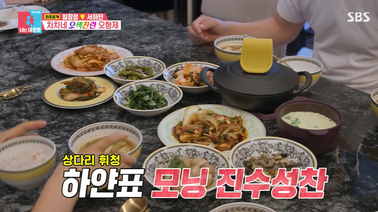 넷째 임준재는 6살, 다섯째 임준표는 4살이에요. 다섯 아들이 모두 사이좋게 지내는데 보기 좋더라고요. 서하얀은 여섯 식구를 위해 아침부터 5첩 밥상으로 아침을 차려냈네요. 와우.