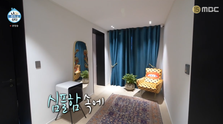 강렬한 계단을 지나면 박나래가 좋아하는 리빙 공간이 펼쳐져요. 복도조차 심플하지만 감각 있게 꾸몄네요. 침실 또한 컬러감이 돋보여요.